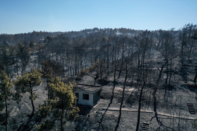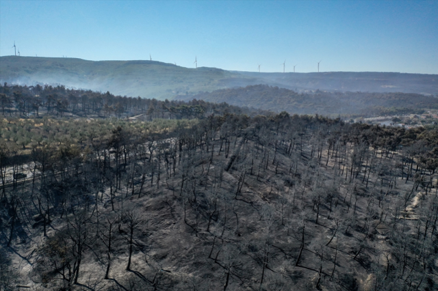 Çanakkale’de çıkan ve geniş alanlara yayılan orman yangınından geriye bu görüntüler kaldı: