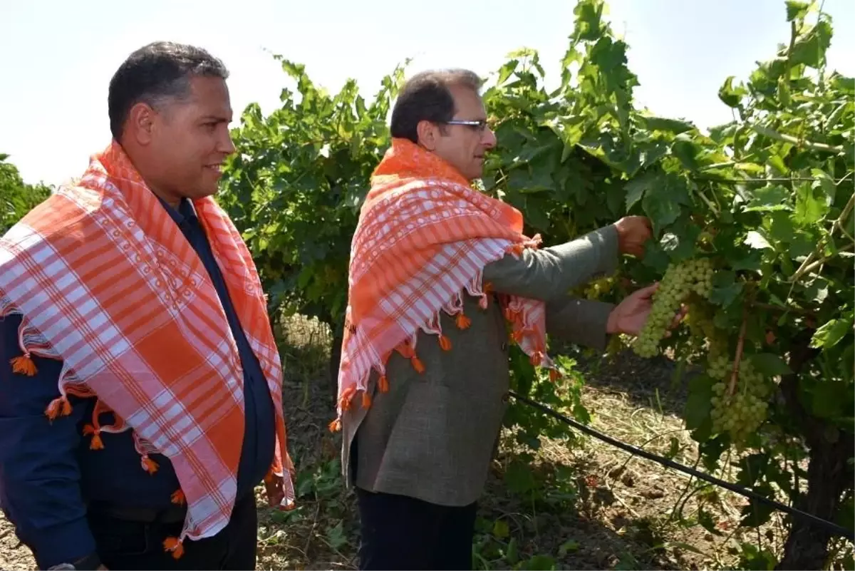 Manisa’nın Salihli ilçesi Kaymakamı Ali Güldoğan, Kemerdamları Mahallesi’nde düzenlenen üzüm hasadına katılarak, üzüm kesti.