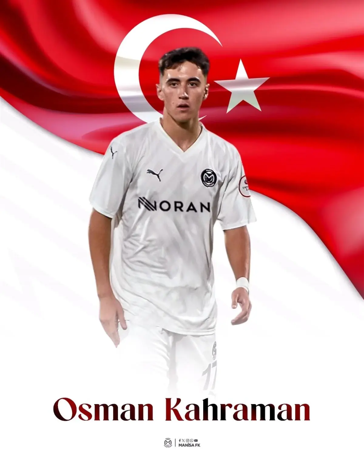 Manisa Futbol Kulübü’nden yapılan açıklamada, “Manisa Futbol Kulübümüzü, şehrimizi ve ülkemizi gururla temsil edecek olan milli futbolcumuz Osman Kahraman’a Ay-Yıldızlı formamız altında başarılar diliyoruz” denildi. – MANİSA