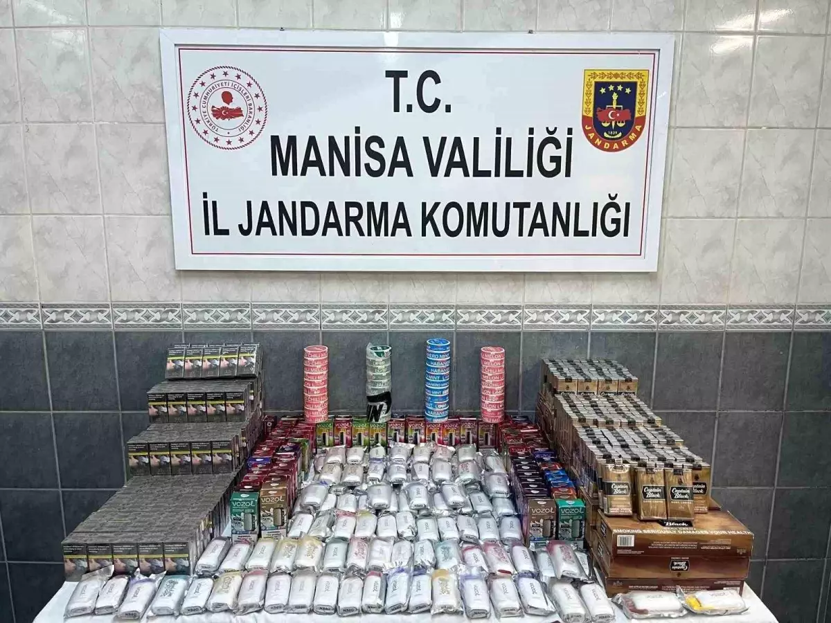 Manisa İl Jandarma Komutanlığı ekiplerince düzenlenen operasyonda çok sayıda kaçak sigara ve elektronik sigara ele geçirilirken, 1 şüpheli gözaltına alındı.