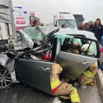 Çarpışma sonrası duran tırın dorsesine, Mehmet Semet’in kullandığı 45 AVV 892 plakalı otomobil çarptı.