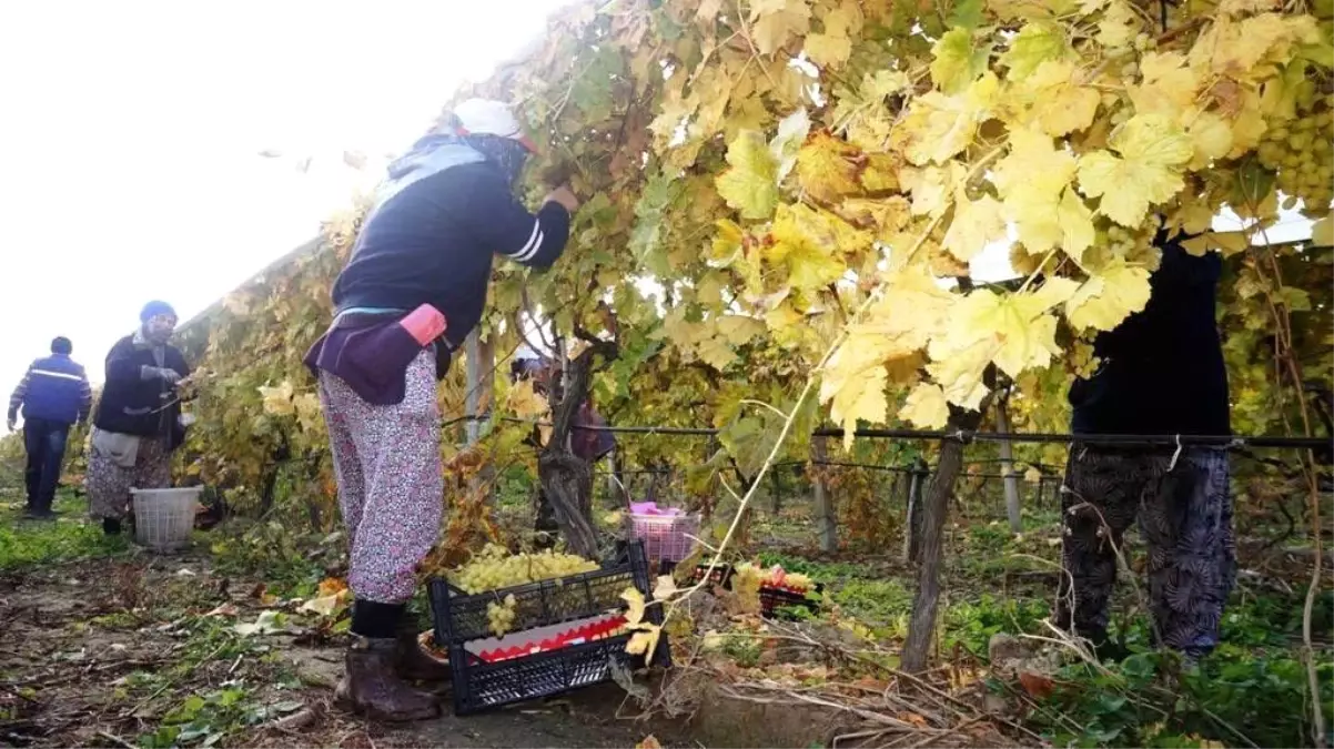 Dünyaca ünlü Sultani çekirdeksiz üzümünün yetiştirildiği Manisa’nın Sarıgöl ilçesinde kış aylarına girilmesine rağmen üzüm hasadı devam ediyor.