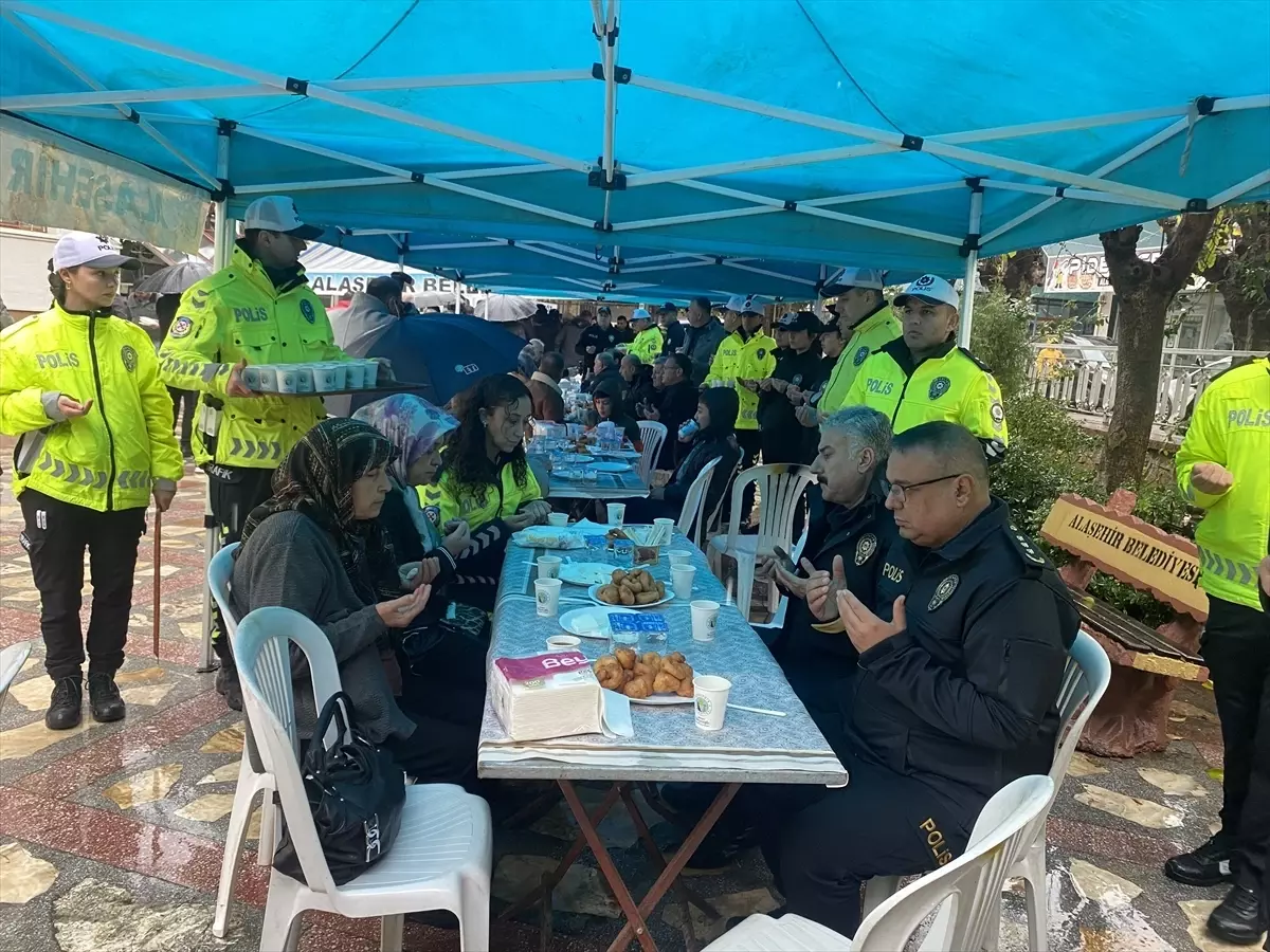 Programda vatandaşlara çeşitli ikramlarda bulunuldu. Mevlidin ardından Alaşehir İlçe Emniyet Müdürlüğü Trafik Denetleme Büro Amirliği önünde kurban kesildi.