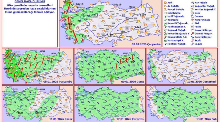 HAVA SICAKLIĞI: Önemli bir değişiklik beklenmiyor. Güneydoğu Anadolu’da mevsim normallerinin altında, diğer yerlerde mevsim normallerinin üzerinde seyretmeye devam edeceği tahmin ediliyor.