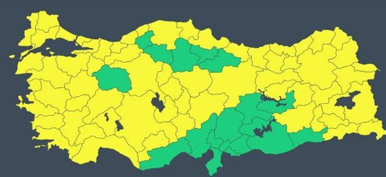 Meteoroloji yarın “Afyonkarahisar, Ağrı, Ankara, Antalya, Artvin, Aydın, Balıkesir, Bilecik, Bingöl, Bitlis, Bolu, Burdur, Bursa, Çanakkale, Denizli, Diyarbakır, Edirne, Erzincan, Erzurum, Giresun, Gümüşhane, Hakkari, Isparta, İstanbul, İzmir, Kars, Kastamonu, Kayseri, Kırklareli, Kırşehir, Kocaeli, Konya, Kütahya, Manisa, Muğla, Muş, Nevşehir, Niğde, Ordu, Rize, Sakarya, Samsun, Siirt, Sinop, Sivas, Tekirdağ, Trabzon, Tunceli, Uşak, Van, Yozgat, Zonguldak, Aksaray, Bayburt, Karaman, Kırıkkale, Batman, Şırnak, Bartın, Ardahan, Iğdır, Yalova, Düzce” için sarı kodlu uyarıda bulundu.