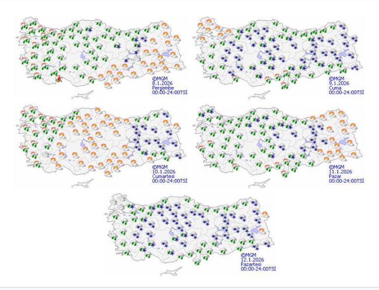 Meteoroloji Genel Müdürlüğü tarafından yapılan tahminlere göre: Ülkemiz genelinin parçalı ve çok bulutlu, Marmara, Ege, Akdeniz, İç Anadolu, Karadeniz, Doğu Anadolu ile Gaziantep, Kilis, Adıyaman ve Diyarbakır çevrelerinin yağışlı geçeceği tahmin ediliyor. Yağışların Yağmur ve sağanak, kıyılarda yer yer gök gürültülü sağanak, Doğu Anadolu, Akdeniz’in Toroslar mevkii, Doğu Karadeniz’in iç kesimlerinin yüksekleri ile zamanla kuzeybatı kesimlerin yükseklerinde karla karışık yağmur ve kar şeklinde olmak üzere Marmara’nın batısı, Ege ile Batı Akdeniz çevreleri ile Konya’nın güney ve batısında kuvvetli olması bekleniyor. Rüzgarın, Marmara, Ege, Batı Akdeniz, İç Anadolu, Karadeniz ve Doğu Anadolu’nun batısında güneyli yönlerden kuvvetli, yer yer fırtına (60-90 km/sa) şeklinde esmesi bekleniyor. Sabah ve gece saatlerinde iç ve doğu bölgelerde buzlanma ve don olayı görüleceği tahmin ediliyor. Doğu Karadeniz’in iç kesimlerinin yüksekleri ile Doğu Anadolu’nun doğusunda yüksek kar örtüsüne sahip eğimli kesimlerinde çığ tehlikesi bulunmaktadır.