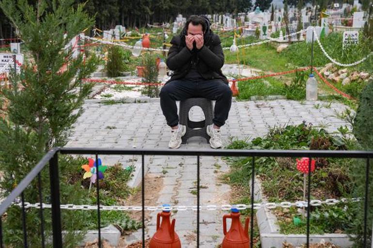 Her sabah iş yerinden önce Soma Belediye Mezarlığı’na gidip eşine ve kızına dua eden Altın, kabirlerin yanına koyduğu tabureye oturup gözyaşı döküyor.