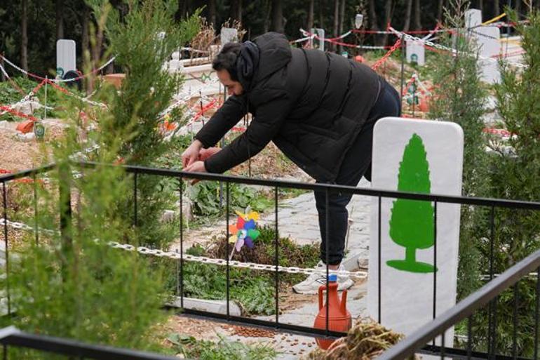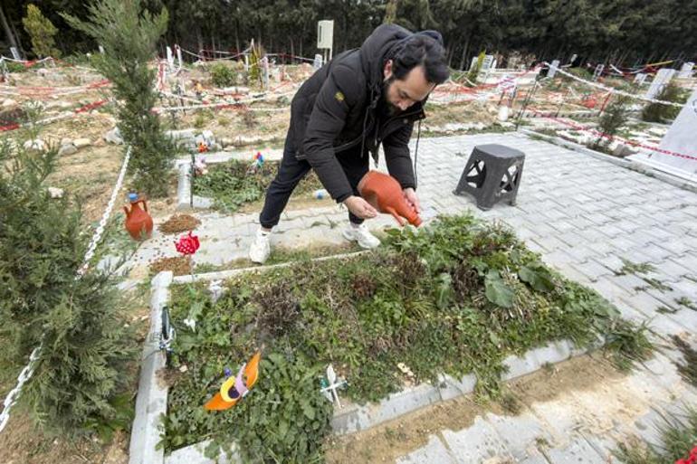 Her sabah iş yerinden önce Soma Belediye Mezarlığı’na gidip eşine ve kızına dua eden Altın, kabirlerin yanına koyduğu tabureye oturup gözyaşı döküyor.