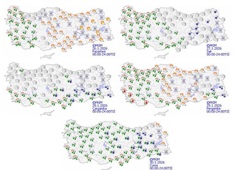 Batı Akdeniz ve Kıyı Ege için gök gürültülü şiddetli sağanak, Doğu Akdeniz ve Ege Denizi için ise fırtına uyarısı yaptı. İçişleri Bakanlığı da bu iller için “sarı” kodlu meteorolojik uyarı yayınladı.
