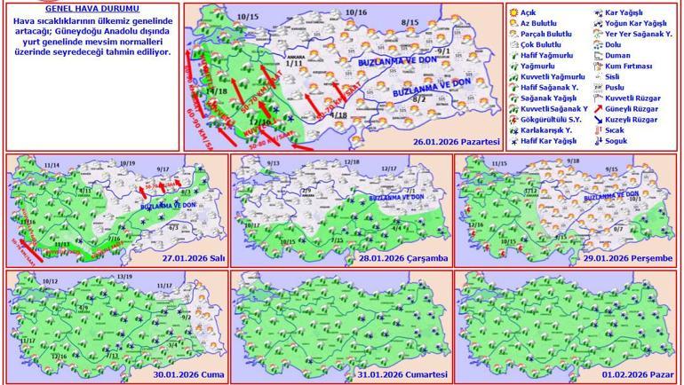 İstanbul’da ocak ayı sonuna kadar ciddi bir soğuk hava beklenmemektedir. Yağışların bu dönemde yağmur şeklinde olması; gökyüzünün ise çoğunlukla parçalı bulutlu, yer yer sağanak yağış geçişleriyle seyretmesi öngörülmektedir.