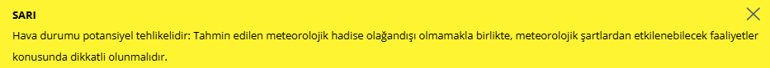 13 İL İÇİN TURUNCU VE SARI ALARM