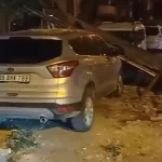 Aksoy Mahallesi’nde ise bir binanın uçan çatısı, park halindeki 5 araçta hasara yol açtı, devrilen bir ağaç da otomobillere zarar verdi.