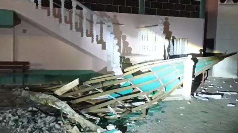 Akşam saatlerinde etkisini artıran fırtına nedeniyle Cumhuriyet Mahallesi’nde bir caminin minaresinin külahı devrildi.