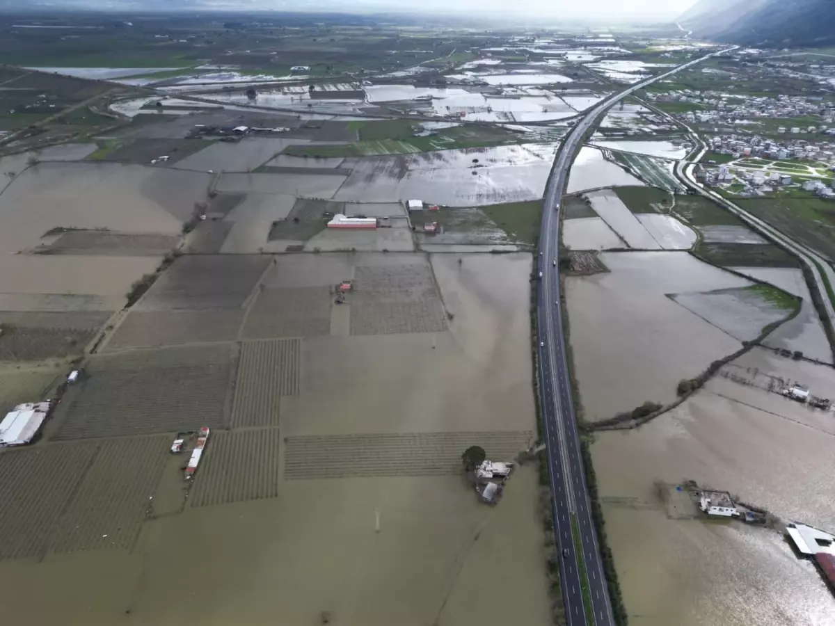 Gediz Nehir taştı; su altında kalan ova dronla görüntülendi