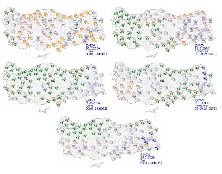 Meteoroloji Genel Müdürlüğü olarak yapılan değerlendirmelere göre: Ülkemizin batı kesimlerinin parçalı ve çok bulutlu, Trakya kesimi, Ege kıyıları ile Çanakkale çevrelerinin yağmur ve sağanak yağışlı, diğer yerlerin az bulutlu ve açık geçeceği tahmin ediliyor. Sabah saatlerinde iç ve doğu kesimlerde buzlanma ve don olayı bekleniyor. Doğu Karadeniz’in iç kesimlerinin yüksekleri ile Doğu Anadolu’nun doğusunda yüksek kar örtüsüne sahip eğimli kesimlerinde çığ ve kar erimesi tehlikesi bulunmaktadır.