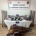 Manisa‘nın Yunusemre ilçesinde evinde çok sayıda silah ele geçirilen zanlı gözaltına alındı.