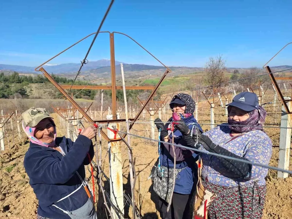 Manisa‘nın Sarıgöl ilçesinde üzüm bağlarında çalışan kadın işçiler, 8 Mart Dünya Kadınlar Günü’nü yevmiye telaşıyla, asma çubuklarını bağlayarak geçirdi.