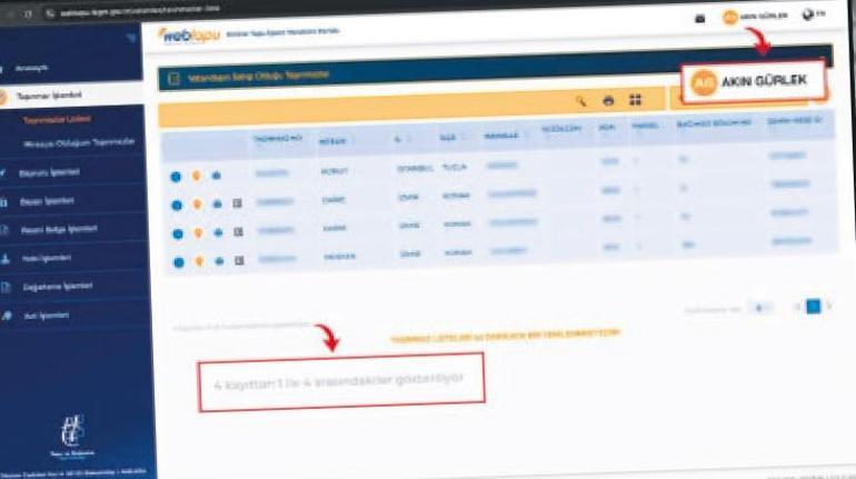 O 4 taşınmaz Gürlek’in paylaştığı web tapu ekranında, İstanbul Tuzla’da bir konut ile İzmir Konak’ta iki daire ve mesken niteliğinde bir taşınmaz listeleniyor.