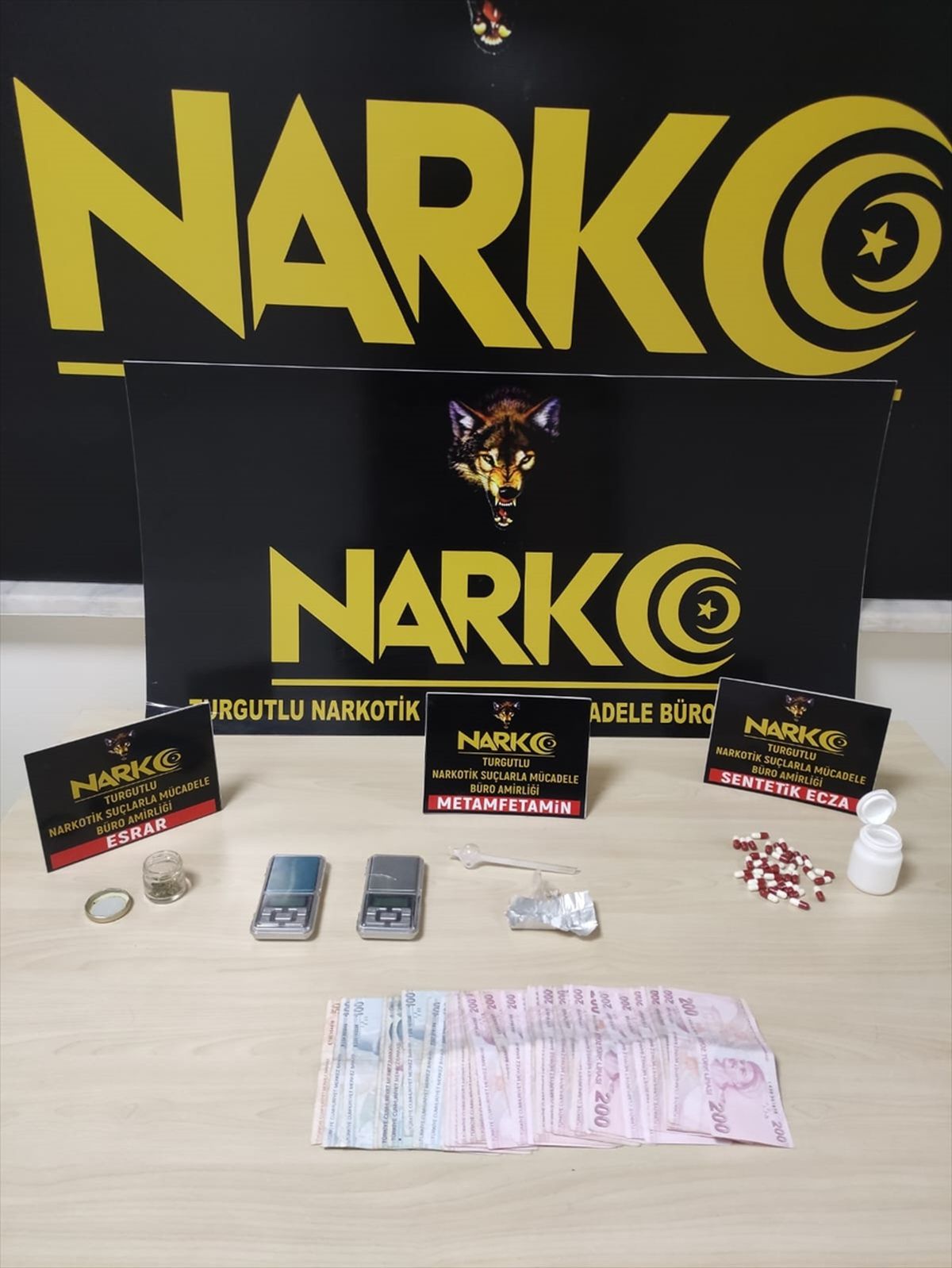 Şüpheli H.İ.K’nin (37) üzerinde ve evinde yapılan aramalarda 37 uyuşturucu hap, bir miktar uyuşturucu, 2 hassas terazi ile uyuşturucu ticaretinden elde edildiği değerlendirilen 6 bin 950 lira ele geçirildi.