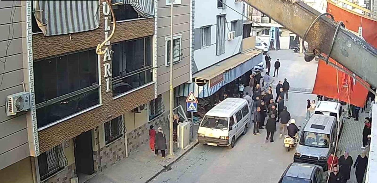 Manisa’nın Turgutlu ilçesinde karşı yönden gelen motosikletliye çarpmamak için sürücüsünün direksiyonu kırdığı otomobil, bakkal dükkanına girdi. Kaza anı güvenlik kamerasına yansıdı.