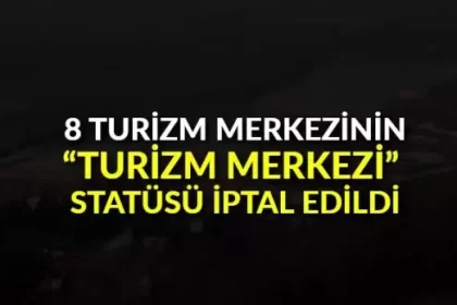 Resmi Gazete'de bugün yayımlanan karara göre, 8 turizm merkezinin "Turizm Merkezi" statüsü iptal edildi....
