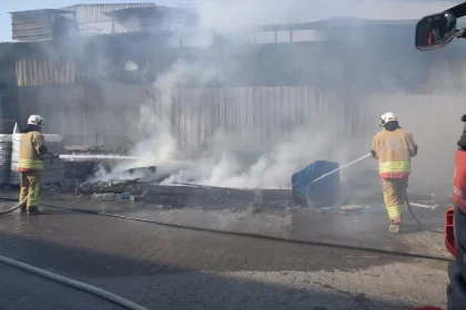 Manisa'nın Turgutlu ilçesinde sanayi sitesinde çıkan yangında, kerestelerin tutuşması sonucunda hemen yanındaki bir iş yerinin deposuna sıçrayarak hasara yol açtı. İtfaiye ve polis ekipleri yangını ko...