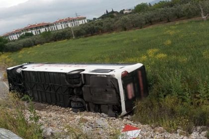 Manisa'nın Akhisar ilçesinde yolcu otobüsünün devrilmesi sonucu 16 kişi yaralandı....