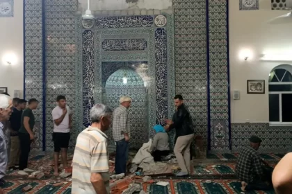 Balıkesir'in Sındırgı ilçesinde meydana gelen 6.1 büyüklüğündeki deprem sonrası Manisa'nın Gördes ilçesindeki Kobaklar Mahalle Camisinde inceleme yapan bir kişi üzerine düşen malzeme nedeniyle hayatın...