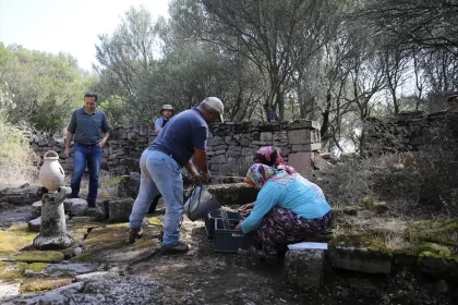 Geçmişi milattan önce 8'inci yüzyıla kadar uzanan Aigai Antik Kenti'nde devam eden arkeolojik kazılarda farklı dönemlerde açığa çıkarılarak içi temizlenen sarnıçlar, su tutarak kazı ekibine hizmet ver...