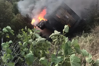 Manisa'nın Salihli ilçesinde virajlı yolda kontrolden çıkan bir kamyon şarampole yuvarlandı ve alev aldı. Yaralanan sürücü hastaneye kaldırılırken, yangın itfaiye ekipleri tarafından kontrol altına al...