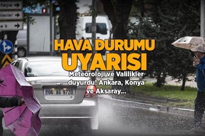 Meteoroloji Genel Müdürlüğü (MGM) yeni hava durumu haritası yayımladı ve saat verildi. Ankara, Konya ve Aksaray çevreleri için kuvvetli rüzgar ve fırtına uyarısı yapıldı. İşte il il yeni hava durumu t...