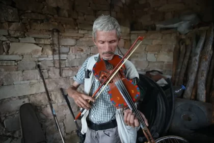 Balıkesir'in Dursunbey ilçesinde çocukluğunda geçirdiği hastalık ve kaza nedeniyle bir gözü görmeyen, bir bacağı da kısmen işlevini yitiren 50 yaşındaki çalgıcı Süleyman Cemal Dereli, oğlunun desteğiy...