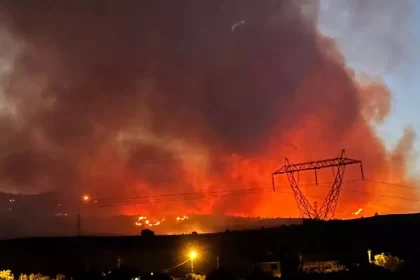 Manisa'nın Akhisar ilçesinde çıkan orman yangını, rüzgarın etkisiyle hızla yayılıyor. Vali Vahdettin Özkan, yangının 10 mahalleyi etkilediğini ve riskin halen sürdüğünü belirtti....