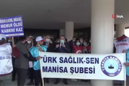 Manisa'da Türk Sağlık Sen üyesi sağlıkçılar bir günlük iş bırakma eylemi yaptı Manisa Merkezefendi Devlet Hastanesinde iş bırakma eylemiyle ilgili düzenlenen basın açıklamasına diğer sendikalar da kat...