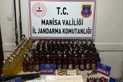 Manisa'nın Salihli ilçesinde jandarma, yaptığı operasyonda evinde sahte içki ve ruhsatsız silah bulunduran E.Y.'yi gözaltına aldı. Operasyonda 110 şişe sahte viski, 28 şişe sahte rakı, ruhsatsız bir t...