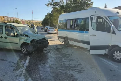 Manisa'nın Demirci ilçesinde meydana gelen kazada, öğrenci servisi ile hafif ticari aracın çarpışması sonucu 8'i öğrenci 9 kişi yaralandı. Yaralılar hastaneye kaldırılırken, veliler büyük panik yaşadı...