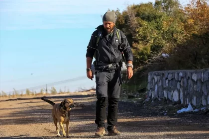 Orman yangınlarına karşı farkındalık oluşturmak amacıyla 4 yıl boyunca yürüyerek Türkiye'yi dolaşan Ömer Özer, 81. fidanını memleketi Manisa'da dikti. 'Yoldaş' adını verdiği sokak köpeğiyle birlikte g...
