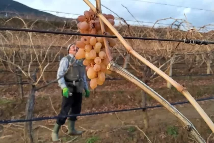 Manisa'nın Sarıgöl ilçesinde bir üzüm üreticisi, dalında taze olarak muhafaza ettiği Red Globe üzümlerini 2026 yılının ilk gününde hediye etti. Uygulama, ekonomik faydasının yanı sıra dayanışma modeli...