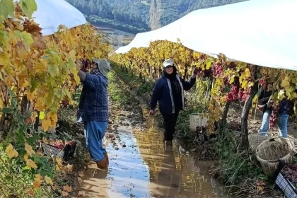 Manisa'nın Sarıgöl ilçesinde yağmur nedeniyle zorlu koşullara rağmen tarım işçileri, Red Globe ve Sultaniye üzümlerinin hasadını aksatmadan sürdürüyor. İşçiler, her gün hasat edilen üzümleri Aydın ve ...