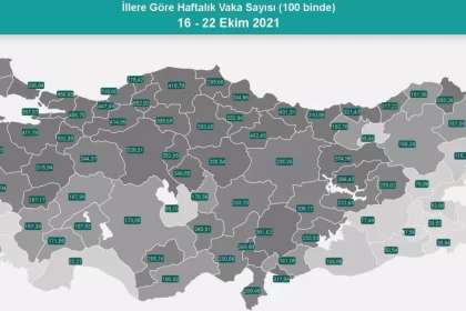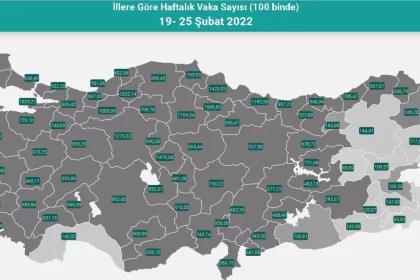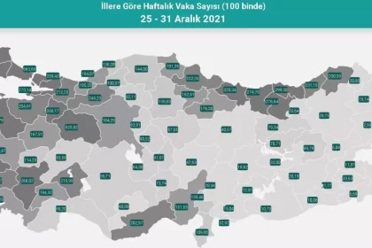 Sağlık Bakanlığı verilerine göre, 25-31 Aralık 2021'de her 100 bin kişide görülen Kovid-19 vakaları 57 ilde arttı, 22 ilde azaldı, 2 ilde ise değişmedi....