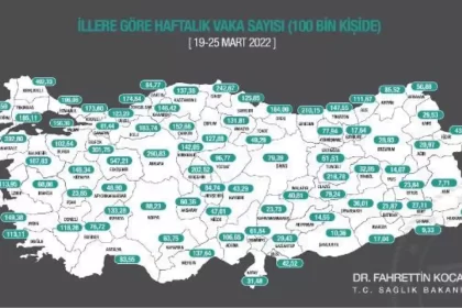 Sağlık Bakanlığının 19-25 Mart verilerine göre, her 100 bin kişideki Kovid-19 vaka sayısı, Ankara, İstanbul ve İzmir'de azaldı....