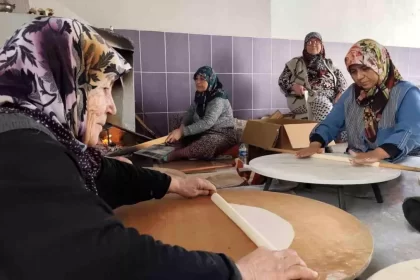 Manisa'nın Şehzadeler ilçesinde 11 kadın, çocukluk arkadaşlarıyla birlikte anne ve ninelerinden öğrendikleri yufka açma geleneğini 50 yıldır bir araya gelerek sürdürüyor. Bahçede imece usulü hazırladı...